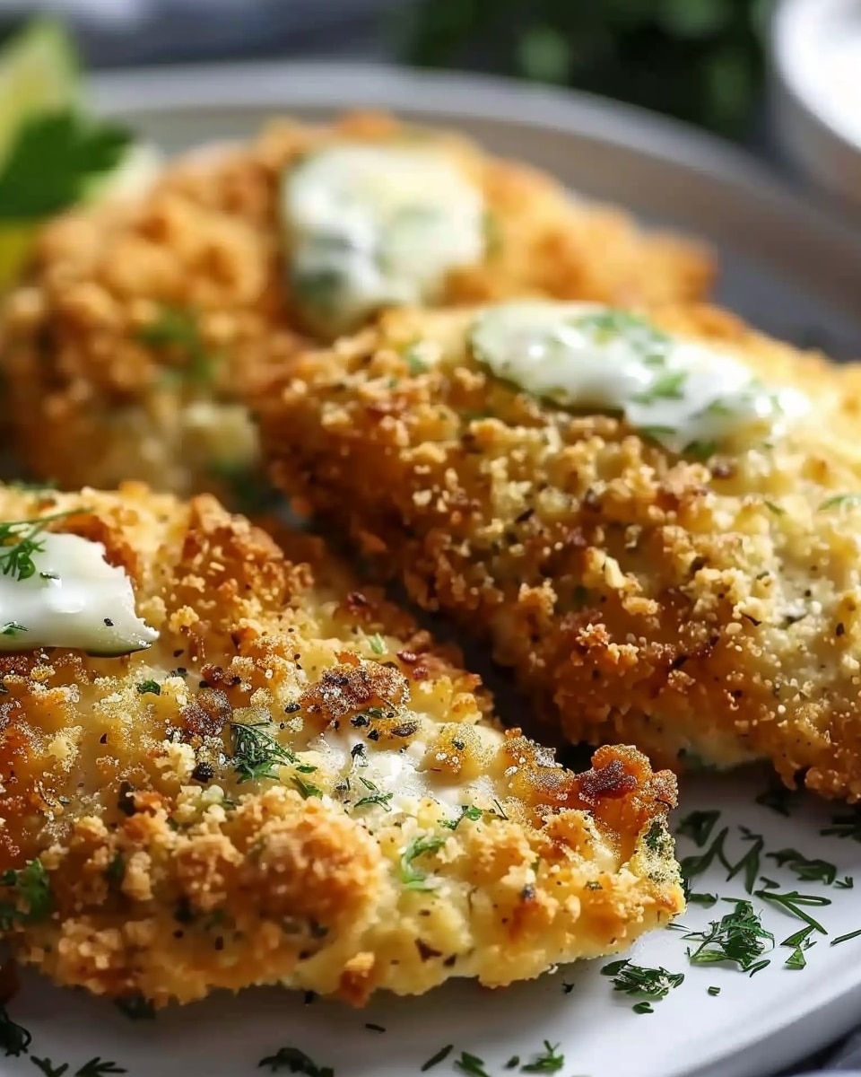 Crispy Dill Pickle Parmesan Chicken features juicy chicken breasts marinated in tangy dill pickle juice, coated in a savory Parmesan breadcrumb crust, and fried until golden and crisp. It delivers bold flavor with a perfect balance of crunch and tenderness.