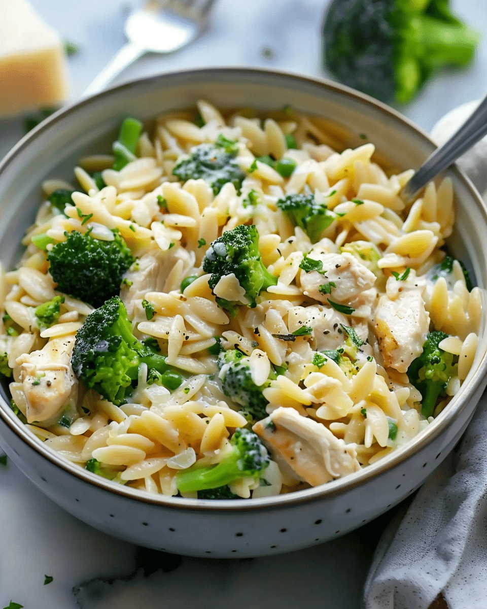 This creamy, cheesy chicken and broccoli orzo is a one-pan comfort food classic. With tender chicken, fresh broccoli, and rich cheese, it’s a hearty yet balanced meal perfect for busy weeknights.