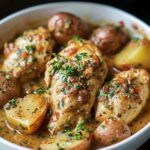 This Garlic Butter Chicken Crockpot Recipe is a comforting, all-in-one meal with tender chicken, hearty potatoes, and sweet carrots slow-cooked in a rich garlic butter sauce. Perfect for busy days, it delivers a warm and satisfying dinner with minimal effort.