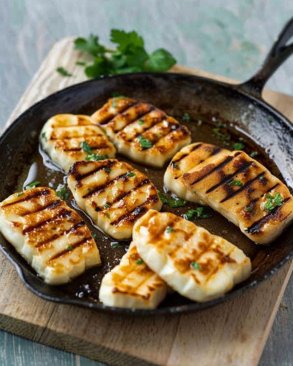 Pan-fried halloumi with a crisp golden crust and a warm, salty, slightly chewy center. This quick and simple method creates perfectly cooked halloumi in just minutes.