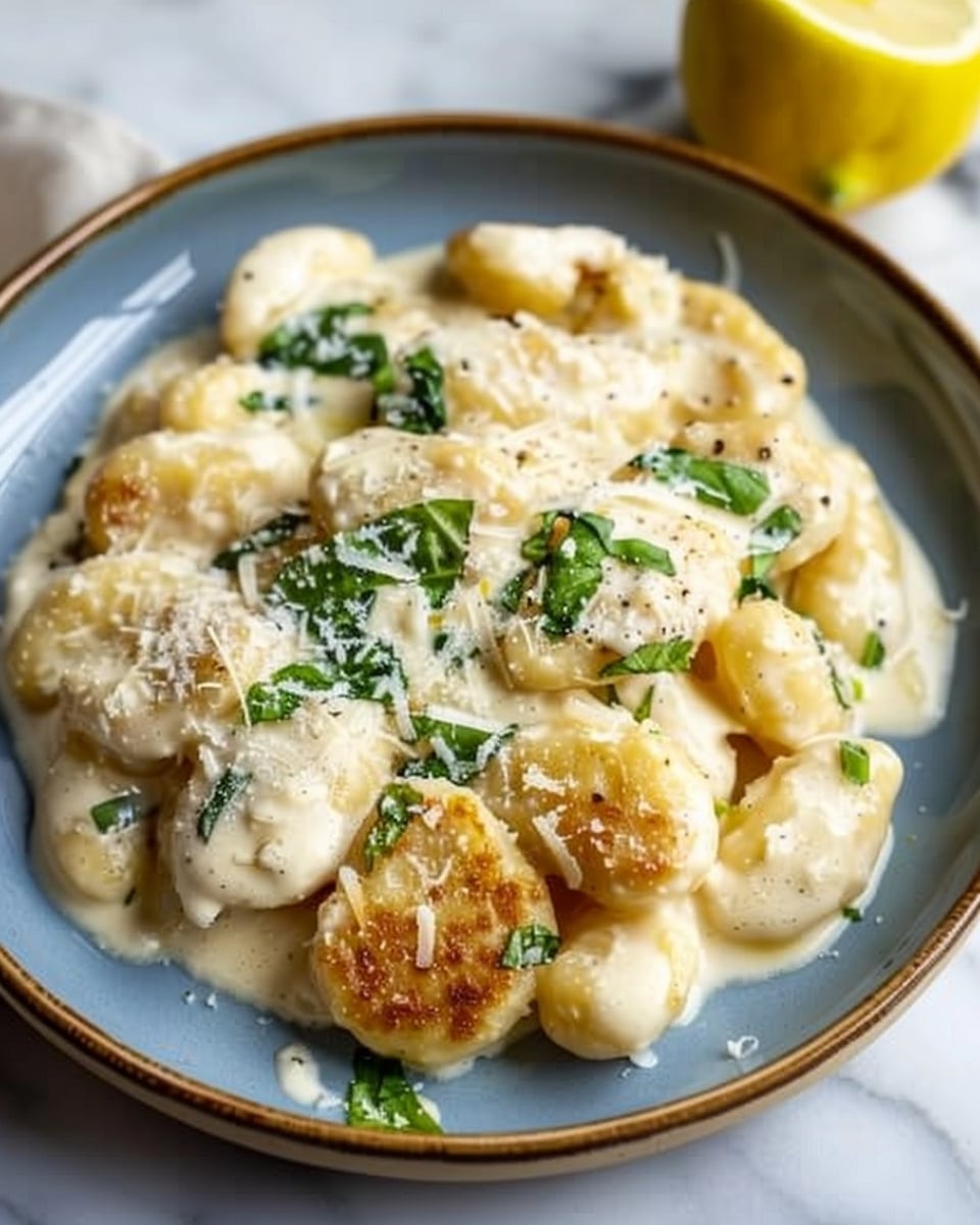 Lemon Chicken Gnocchi is a creamy, comforting skillet meal made with tender chicken, pillowy potato gnocchi, fresh spinach, parmesan, and bright lemon. This one-pan dinner is rich, flavorful, and ready in about 30 minutes.
