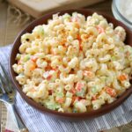 A classic old fashioned macaroni salad made with tender pasta, crisp vegetables, cheddar cheese, and a creamy tangy dressing. Perfect for cookouts, potlucks, and family gatherings.