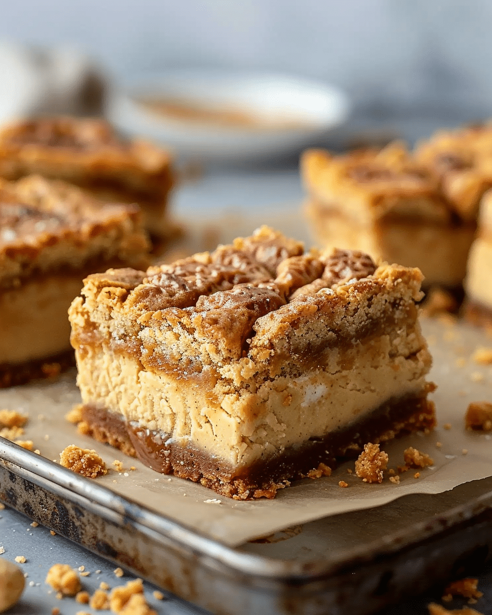 Peanut Butter Greek Yogurt Cookie Pie Bars with Crackled Tops