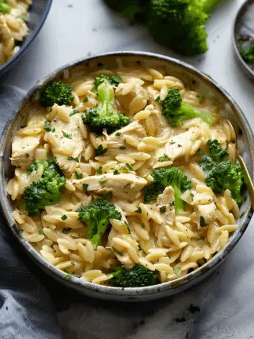 - Skillet Chicken Thighs with Broccoli Cheddar Orzo Recipe
