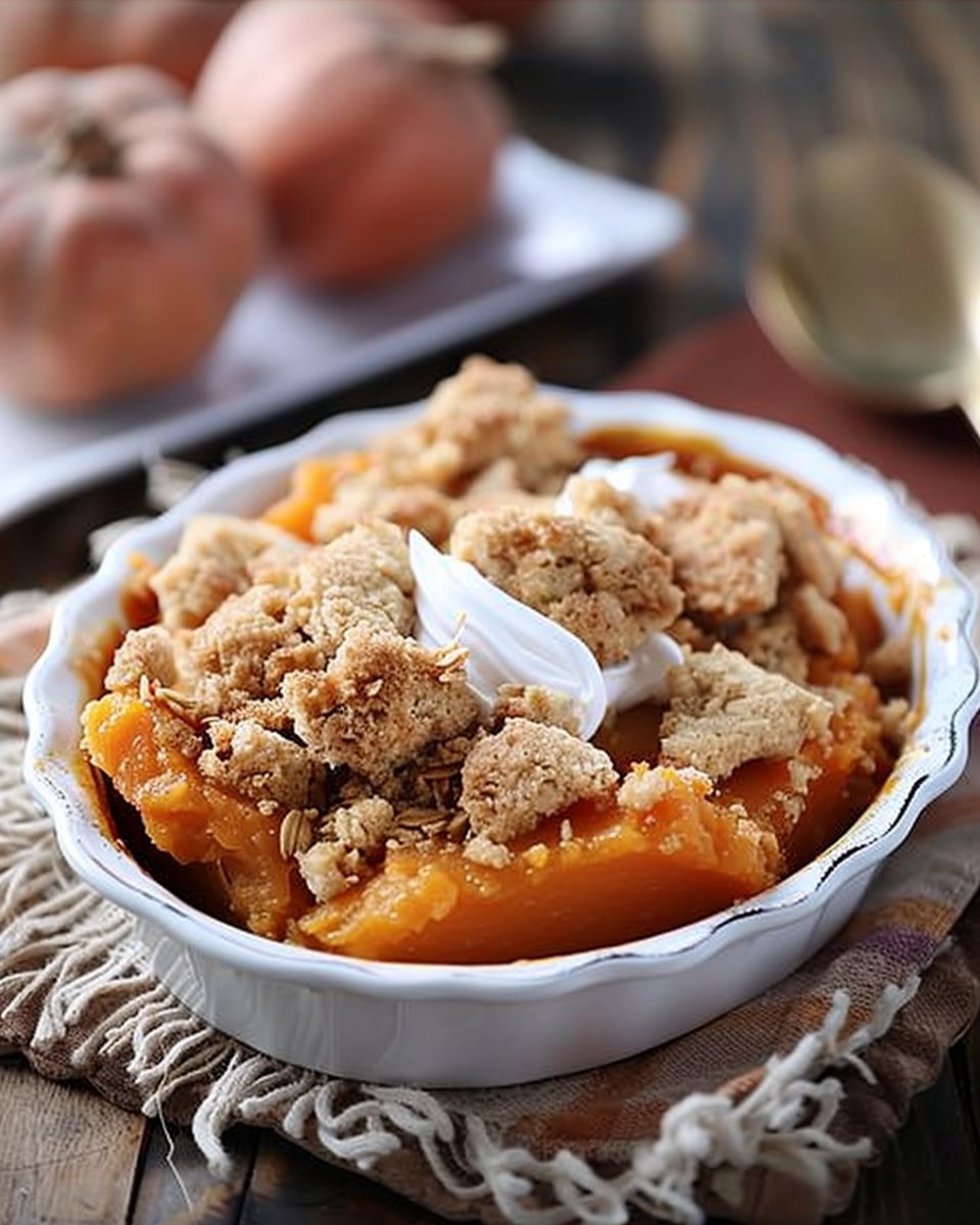 The crumbly topping adds a delightful contrast in texture, with a golden crust that soaks up just enough of the spiced liquid underneath. It’s comforting, flavorful, and perfect served warm on its own or with a scoop of vanilla ice cream.