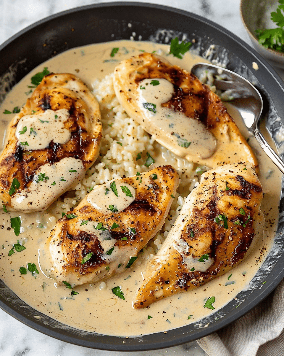 Creamy Ranch Chicken is a comforting main dish made with pan-seared chicken breasts smothered in a rich, tangy, and herby ranch-seasoned cream sauce. Ready in under 30 minutes, it’s perfect for busy weeknights or family dinners.