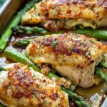 Asparagus Stuffed Chicken Breast is a flavorful and elegant main dish featuring tender chicken breasts filled with crisp asparagus, tangy sun-dried tomatoes, and melted mozzarella cheese, seared to golden perfection and finished in the oven.