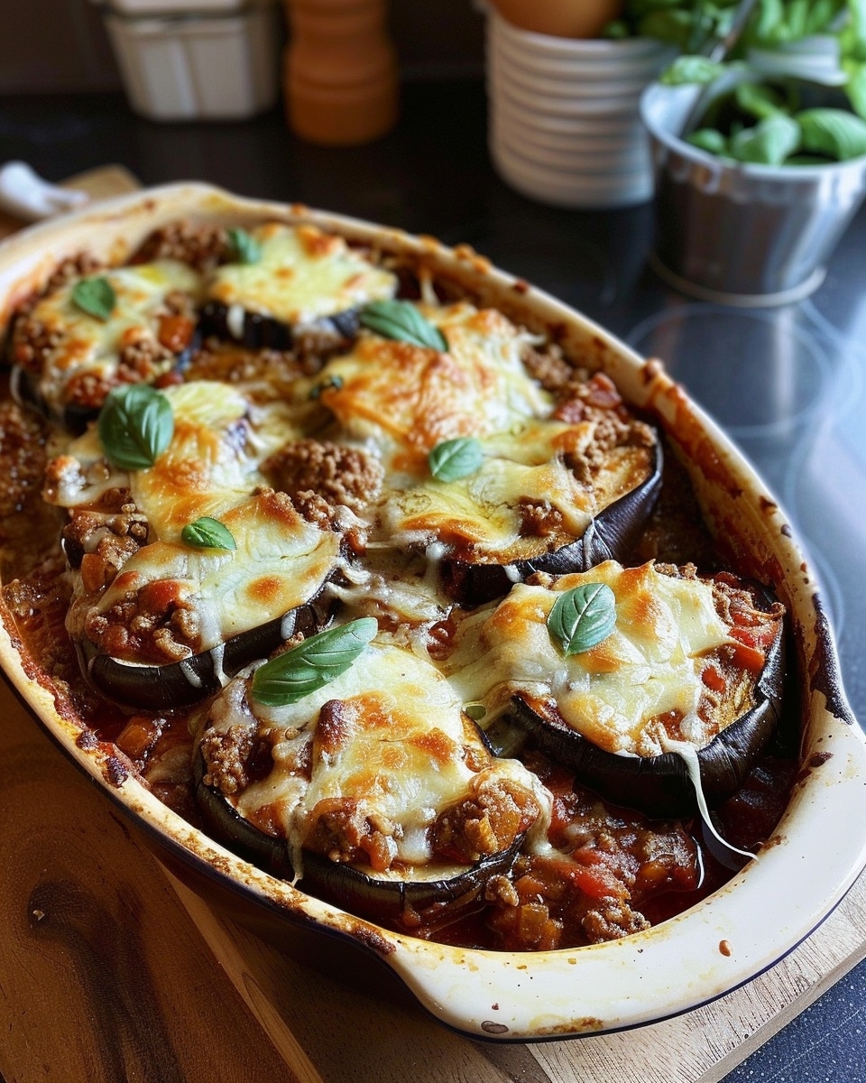 Baked layered eggplant with beef ragu and smoked mozzarella is a comforting, satisfying dish that brings together tender eggplant, savory sauce, fresh basil, and bubbling cheese in every bite. It is impressive enough for entertaining, practical enough for make-ahead dinners, and flavorful enough to become a repeat favorite.