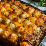 A cozy comfort food mash-up, this Cheesy Meatloaf & Tater Tot Bake layers savory meatloaf, crispy golden tater tots, and melted cheddar cheese for a hearty, satisfying meal that's perfect for weeknights or potlucks.