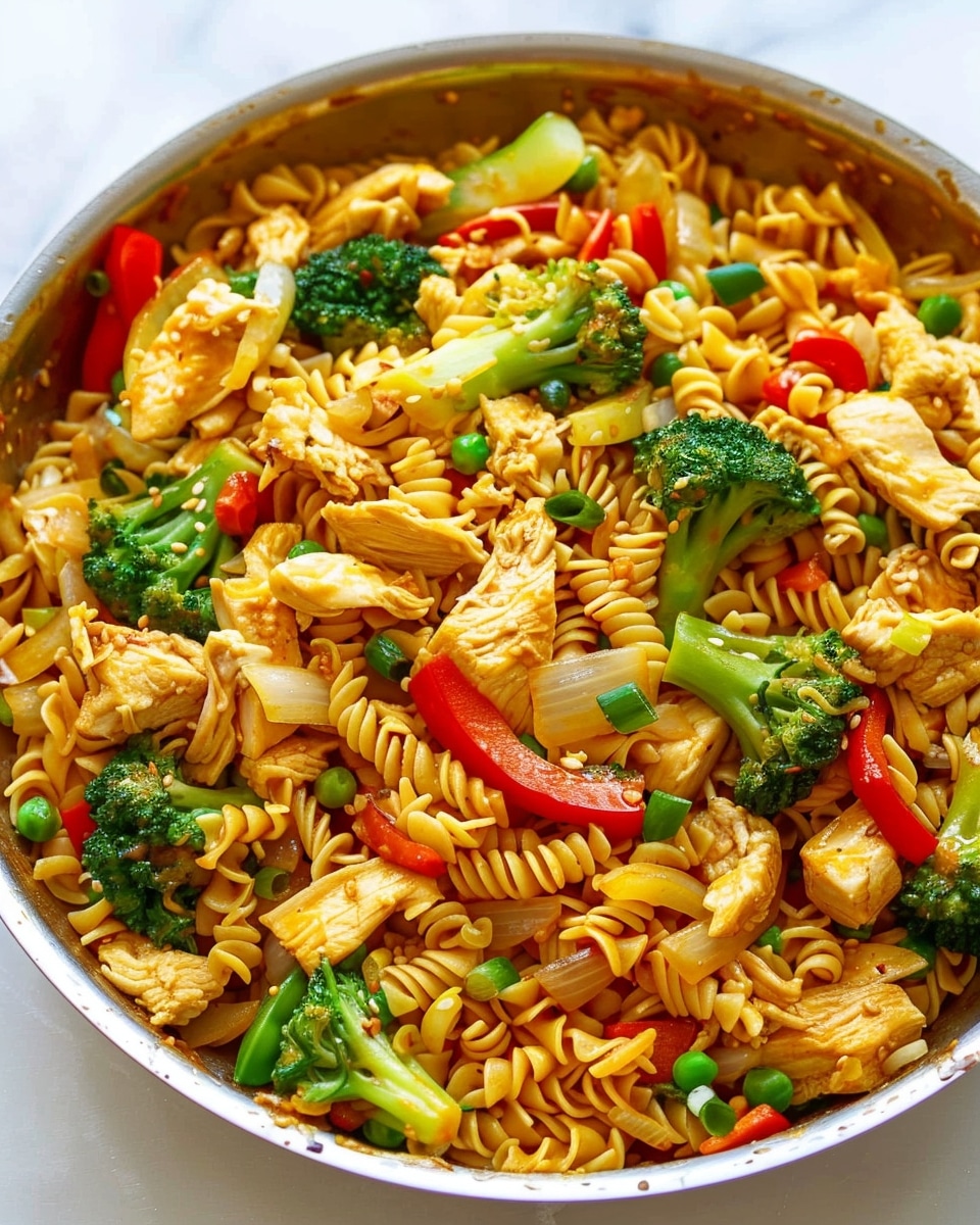 Chicken and Ramen Stir-Fry is a quick and flavorful dish featuring tender chicken, crisp vegetables, and savory noodles tossed in a bold Asian-inspired sauce. Perfect for busy weeknights, this colorful meal comes together in minutes.