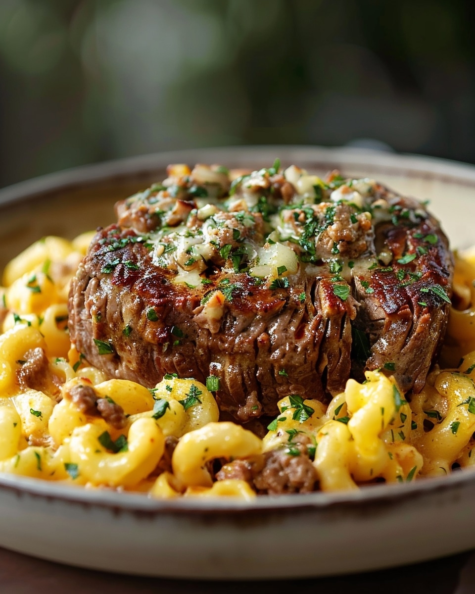 Garlic Butter Beefaroni is a comforting pasta dish made with tender macaroni, savory ground beef, rich tomato sauce, and melted cheddar and mozzarella cheese. Infused with garlic butter and Italian herbs, it’s a hearty and satisfying family-friendly dinner.
