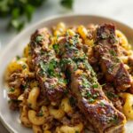 Garlic Butter Beefaroni is a comforting, family-friendly meal that combines simple ingredients with bold flavors. The savory ground beef, garlic butter aroma, rich tomato sauce, and melted cheese create a satisfying dish that’s perfect for busy weeknights or cozy dinners at home.
