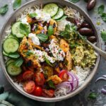 This Mediterranean Chicken Bowl is the perfect combination of bold spices, fresh ingredients, and creamy sauce. The chicken marinates in a mixture of yogurt, lemon, and aromatic spices that infuse every bite with deep flavor and tenderness.