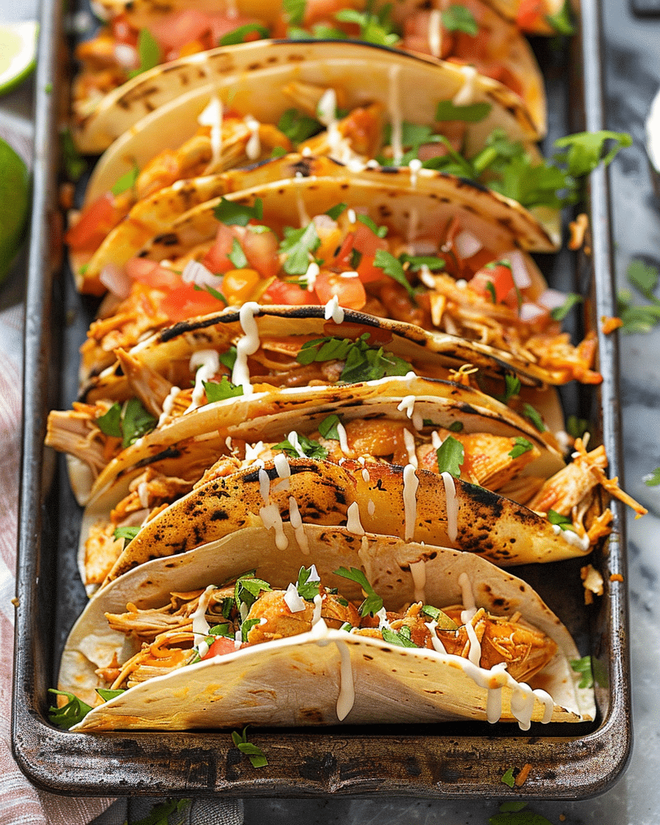 These mini baked chicken tacos are crispy, cheesy, and full of bold flavor. Perfect for busy weeknights or casual gatherings, they're made with shredded chicken, melty cheese, and corn tortillas baked to perfection.