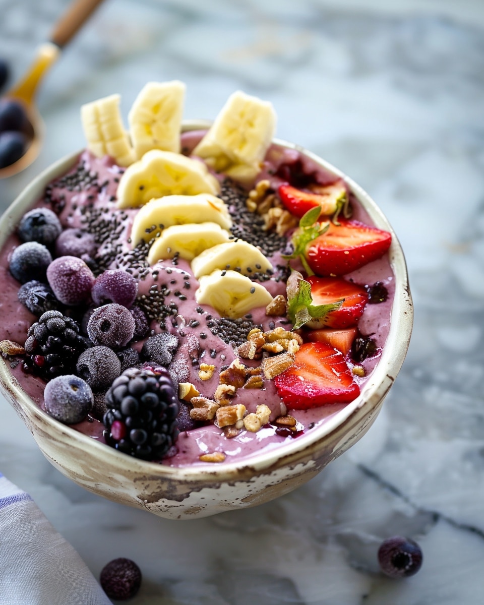 The Protein Berry Smoothie Bowl is a quick, nourishing, and versatile recipe that delivers both flavor and nutrition in just minutes. With a creamy berry base and colorful toppings, it’s a refreshing way to fuel your morning or recharge during the day. Easy to customize and packed with wholesome ingredients, this smoothie bowl can quickly become a staple in your healthy routine.