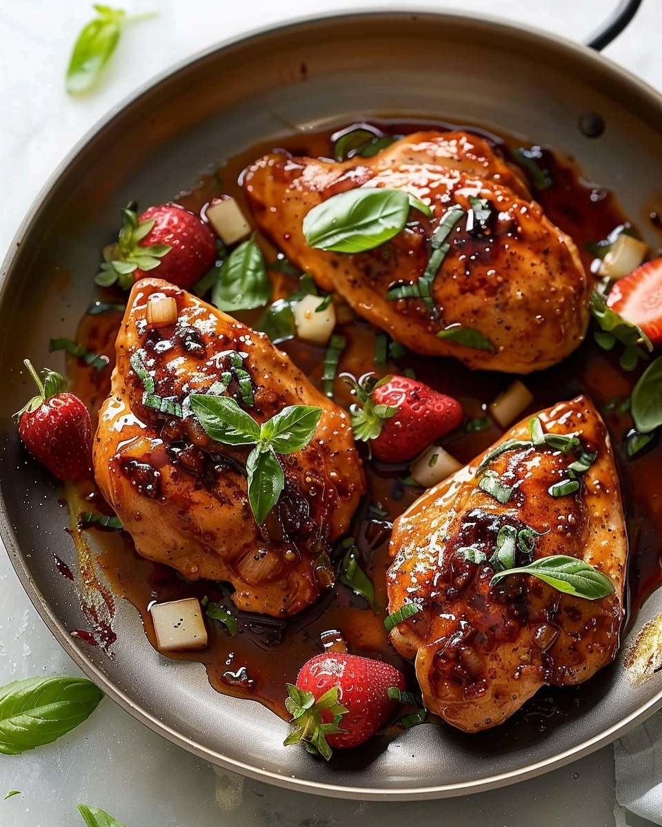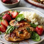 Strawberry Basil Chicken is a quick and elegant skillet dish featuring golden-seared chicken breasts coated in a glossy strawberry-balsamic glaze. Fresh basil and optional goat cheese add bright, fresh flavor for a simple yet impressive meal.